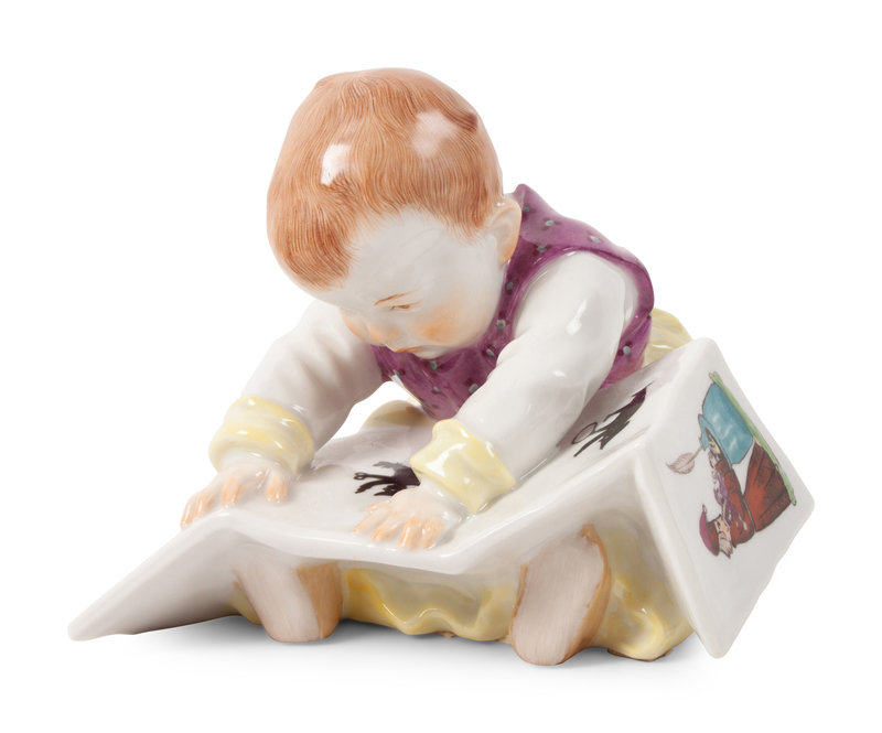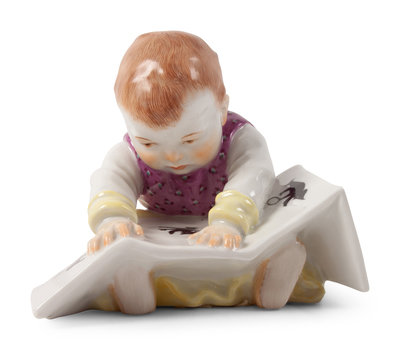 A Meissen Porcelain Baby Reading a Book, by Konrad Hentschel