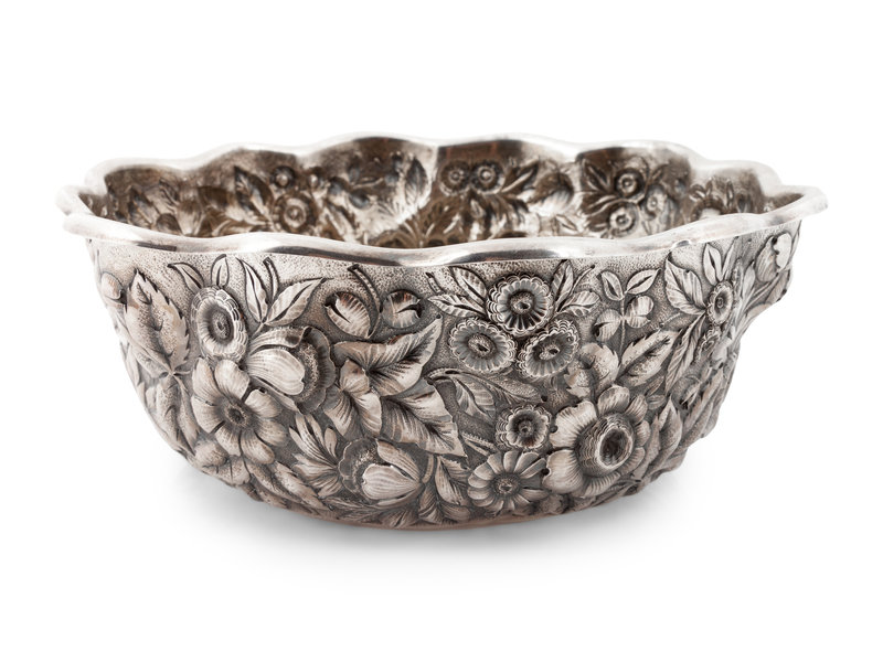 includes a Whiting Manufacturing Co. bowl with a repousse floral design