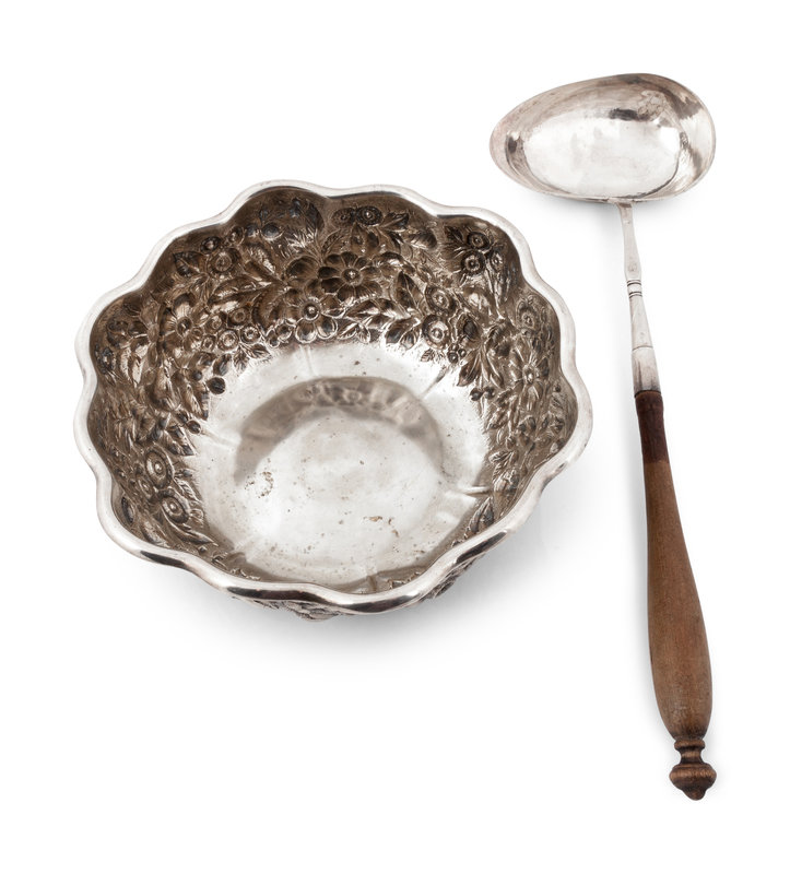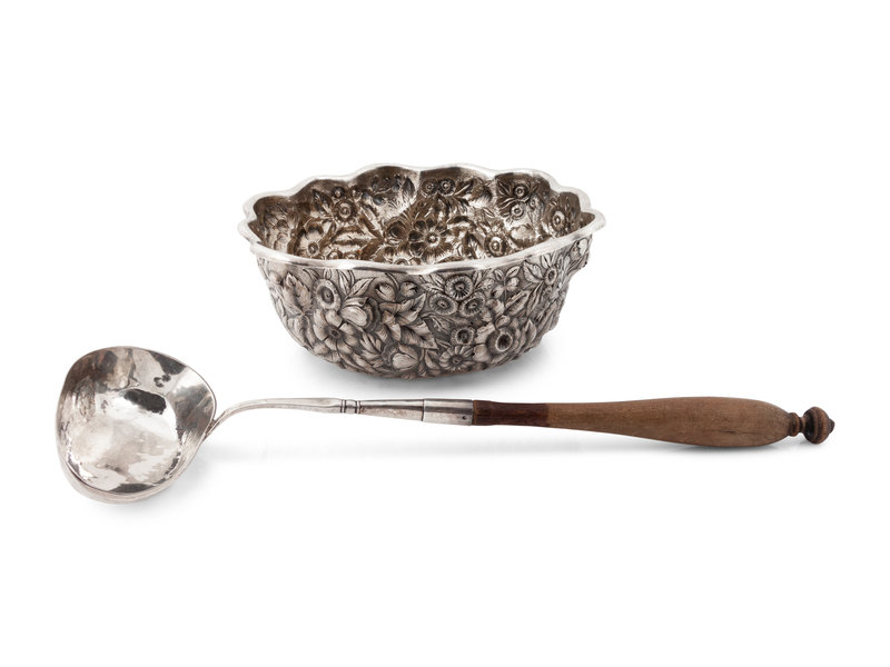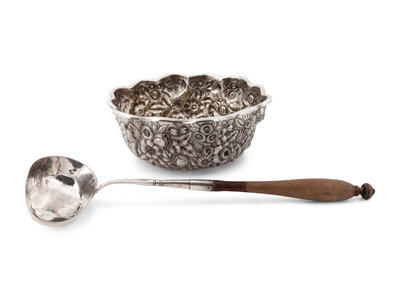 An American Silver Repousse Bowl and a Swedish Silver Dipper