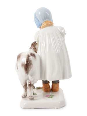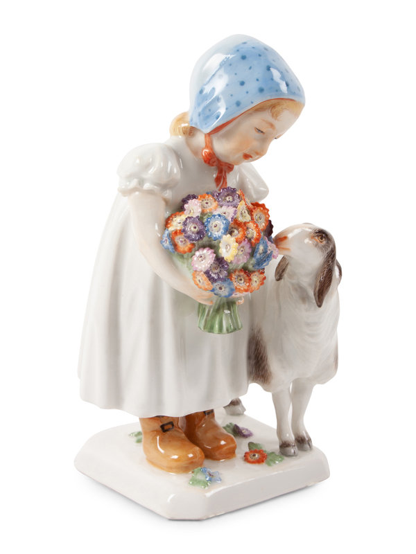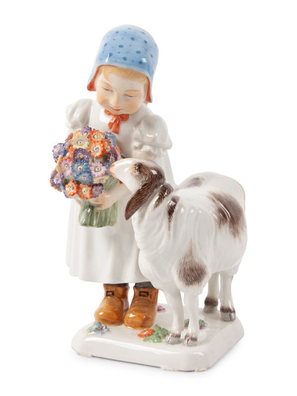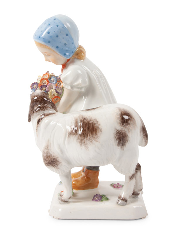 A Meissen Porcelain Figure of a Girl with a Sheep