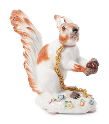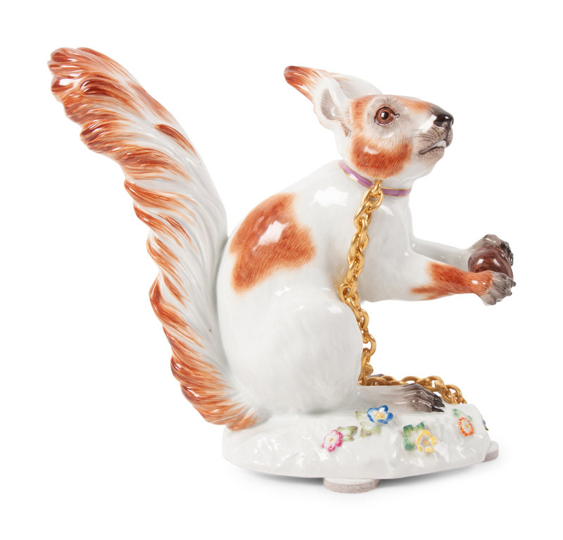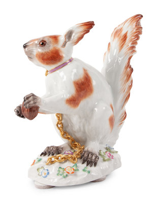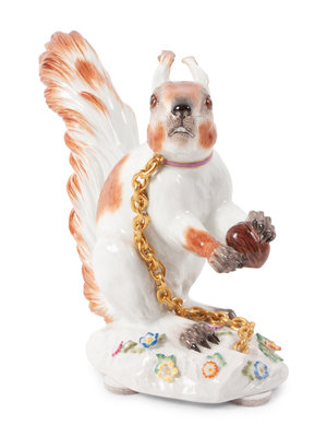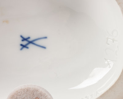 with a gilt porcelain chain on a floral base; with blue underglaze mark and impressed number 1276 and 7371