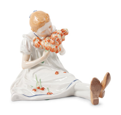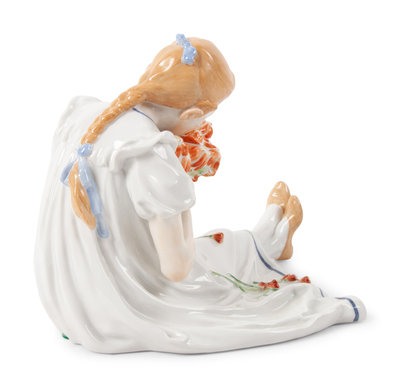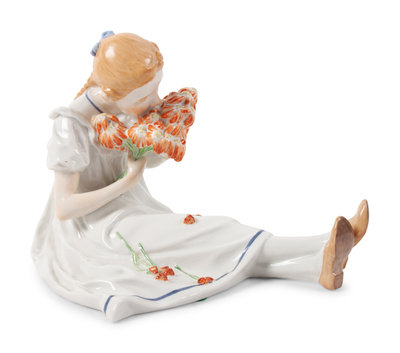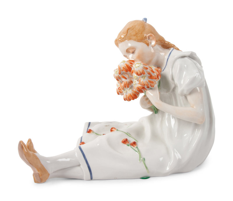 A Meissen Porcelain Figure of a Seated Girl with Flowers by Konrad Hentschel