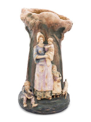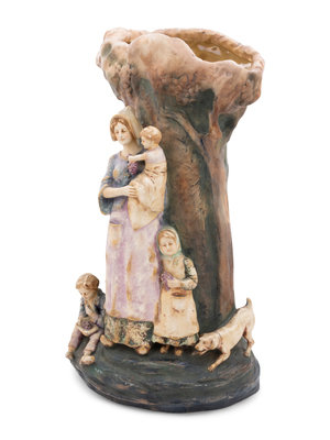 signed illegibly at the rear and marked on underside Amphora, Austria with a crown stamp and numbers 4836