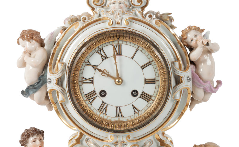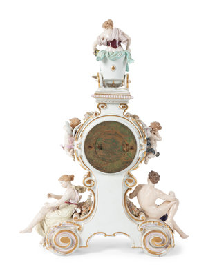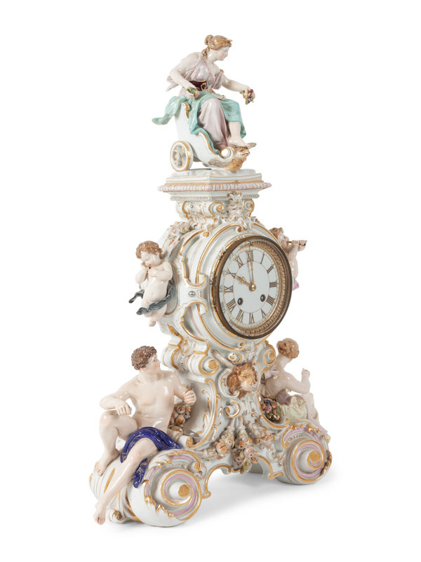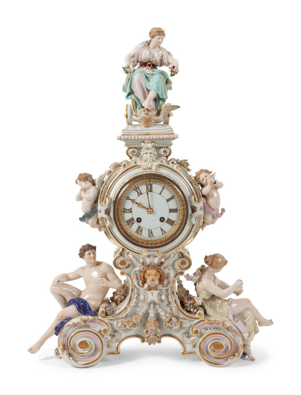 A Meissen Porcelain Figural Mantle Clock