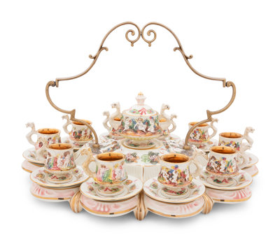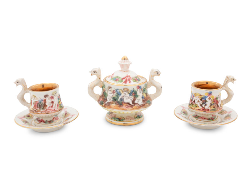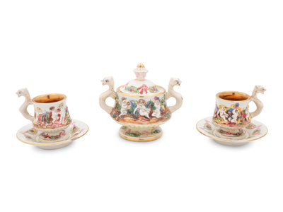A Capodimonte Porcelain Demitasse Tea Service with Undertray