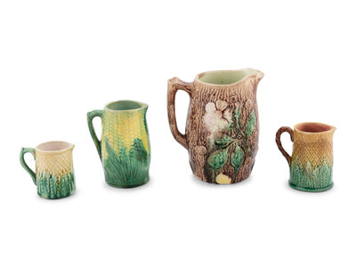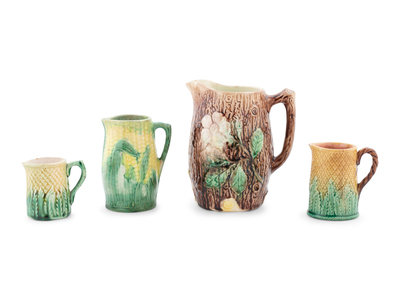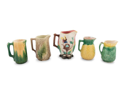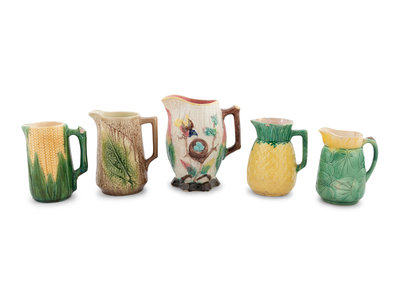 includes a tobacco leaf motif pitcher, a lily motif pitcher, a pineapple form pitcher and other sizes and motifs