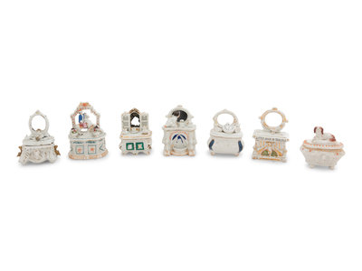 A Collection of Fourteen Staffordshire Trinket Boxes