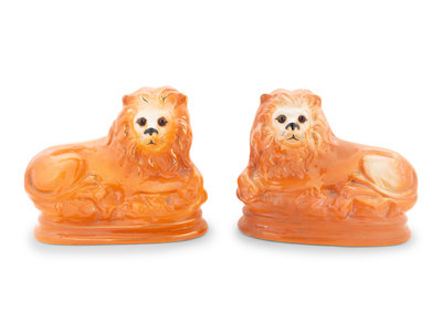 A Collection of Staffordshire Lions and Dogs