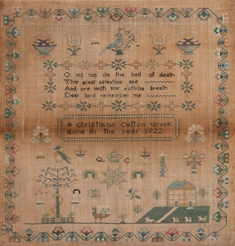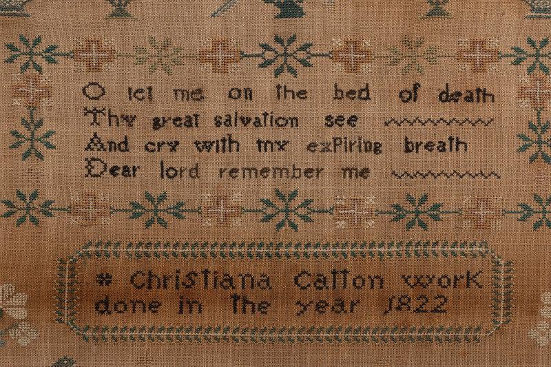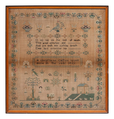A Cotton and Wool Schoolgirl's Needlework Embroidered Sampler