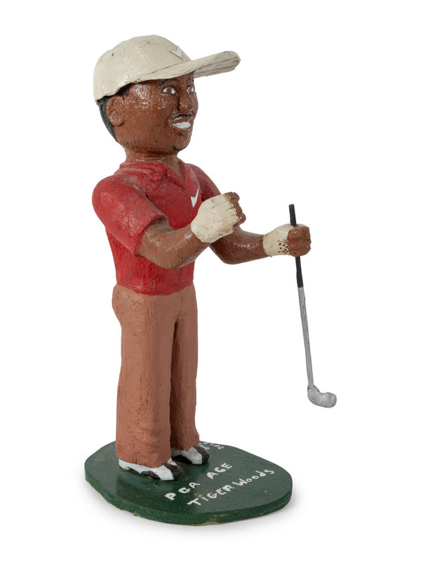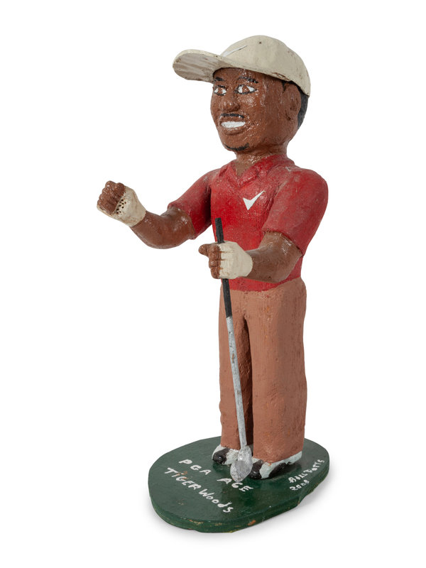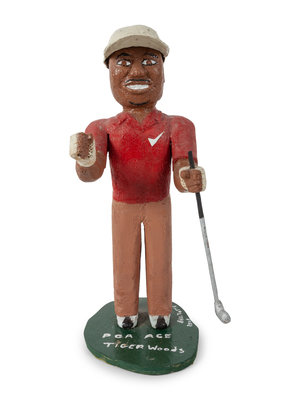 A Folk Art Carved and Painted Tiger Woods Figure, by Bill Potts