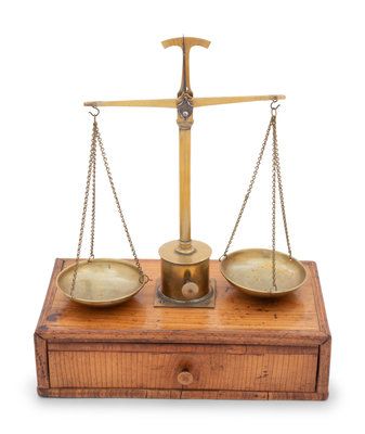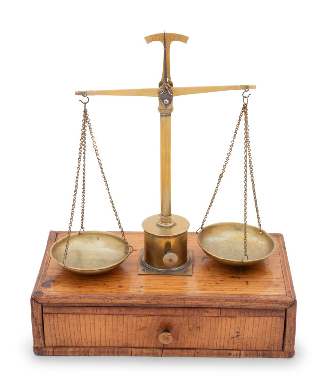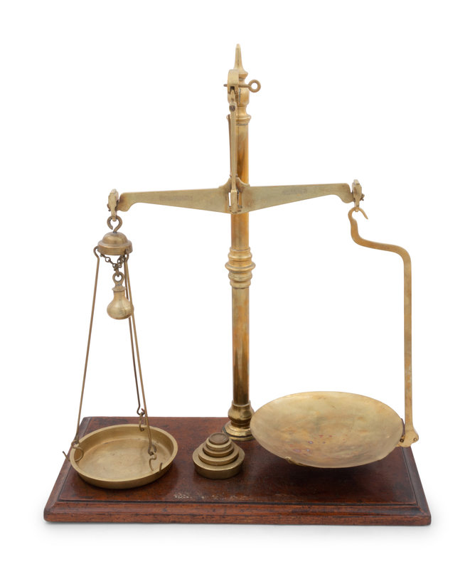 also included is a brass W&T Avery Class B scale with graduated weights from 1 pound to 1 ounce