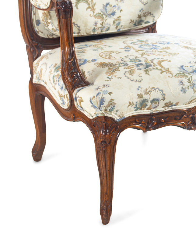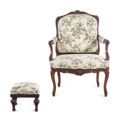 A Louis XV Style Carved Walnut Fauteuil
