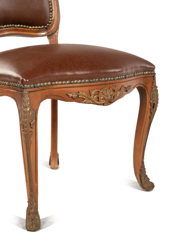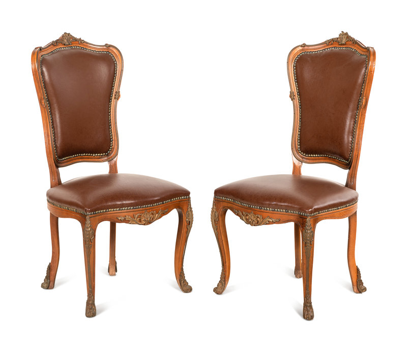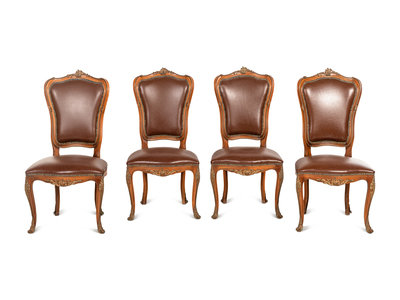 A Set of Four Louis XV Style Gilt Bronze Mounted Dining Chairs