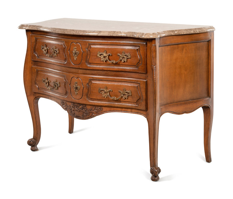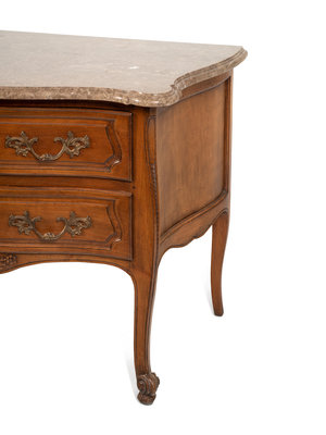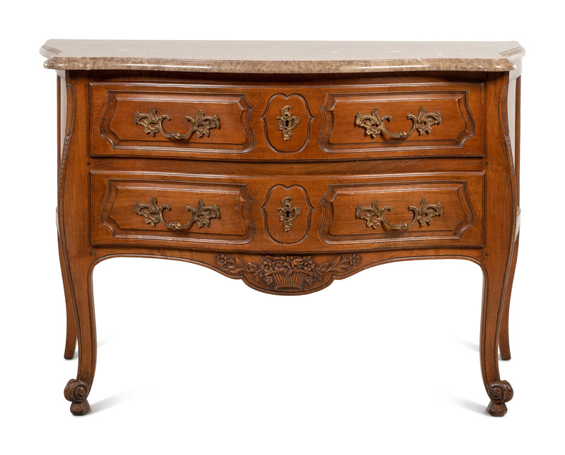 A Louis XV Style Walnut Marble-Top Commode