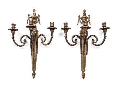 A Pair of Louis XVI Style Gilt Bronze Three-Light Sconces