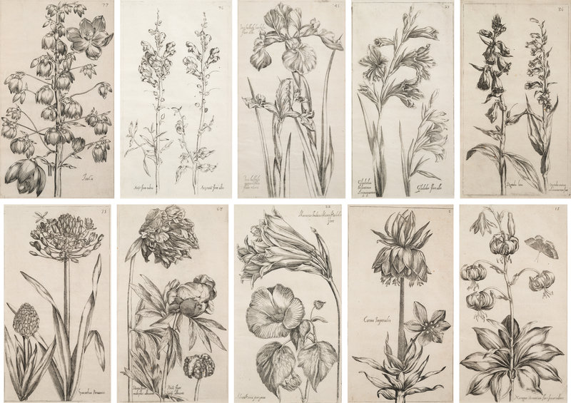 "Ten Engravings of Garden Flowers" from The Pattern Book for Embroidery (Le Jardin du Roy tres Chrestien Henry IV).