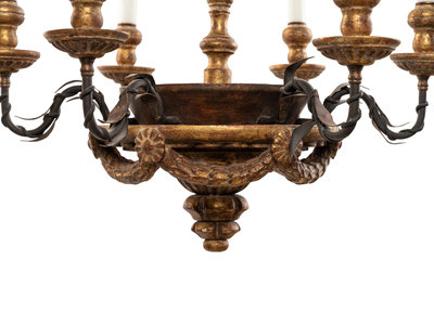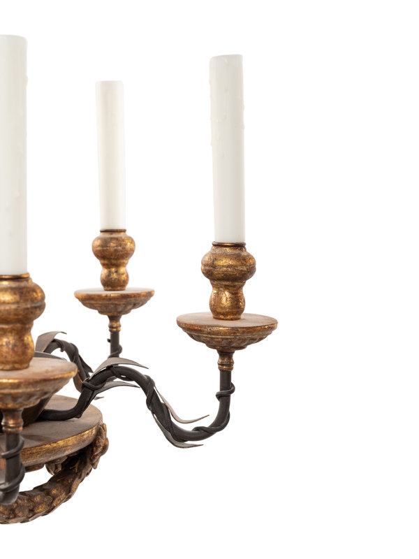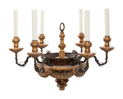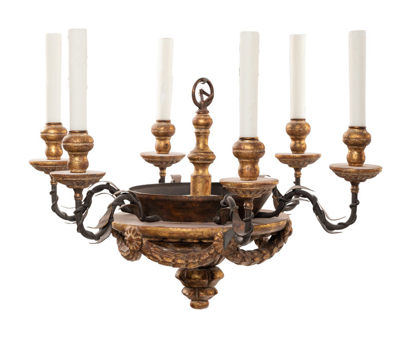 A Neoclassical Parcel Gilt Six-Light Chandelier