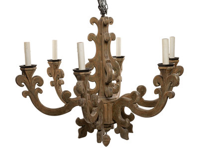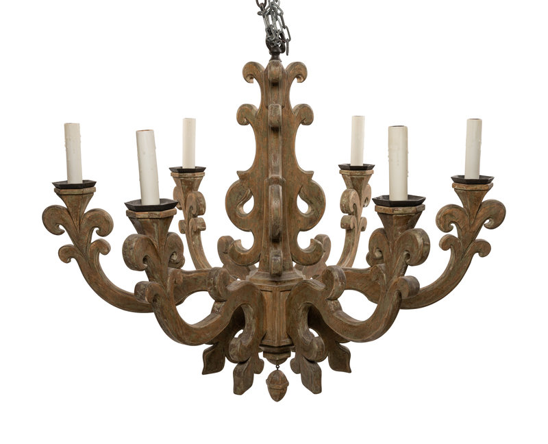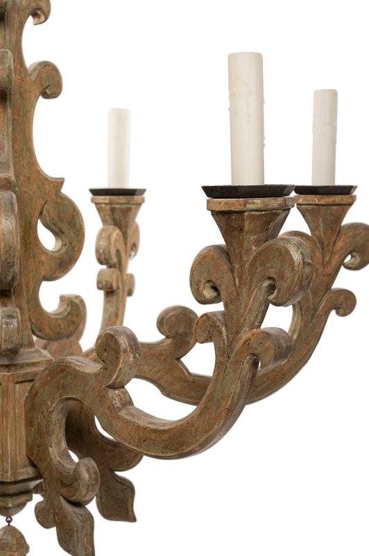 A Baroque Style Carved and Painted Six-Light Chandelier