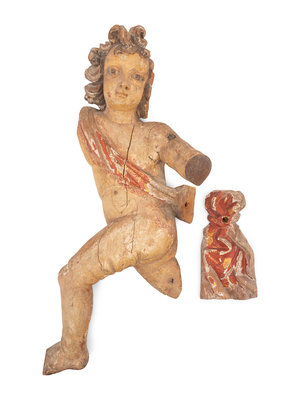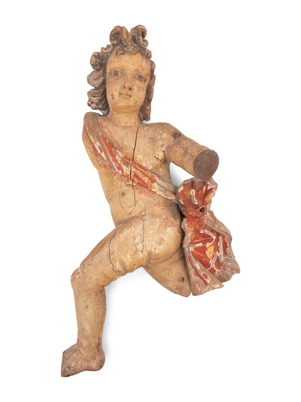 A Spanish Colonial Painted Figure of a Draped Putto