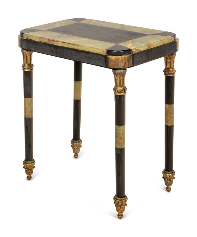 A Continental Onyx, Slate and Gilt Metal Mounted End Table