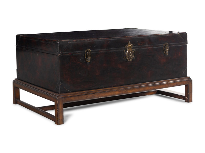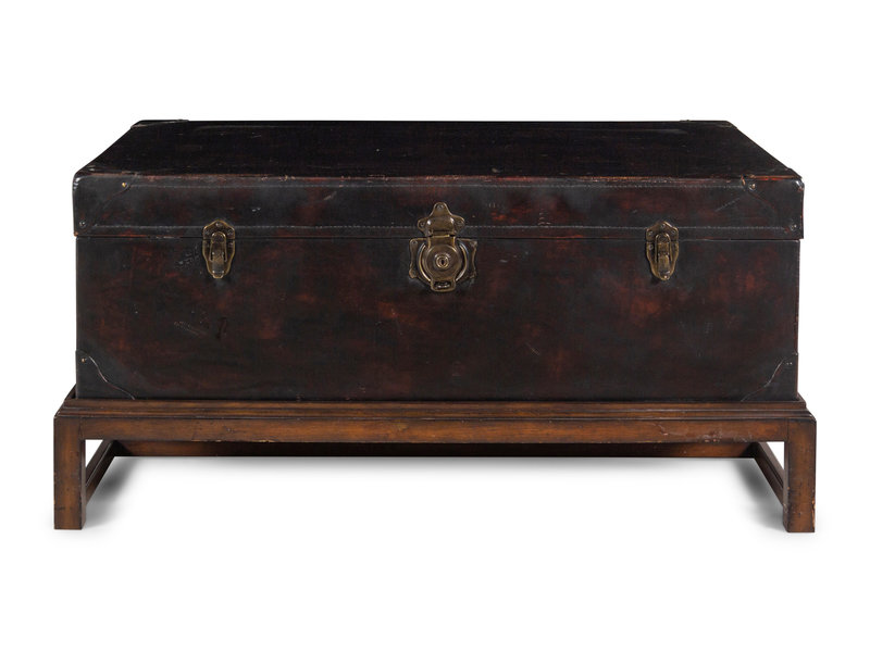 A Leather-Veneered Trunk on a Later Stand