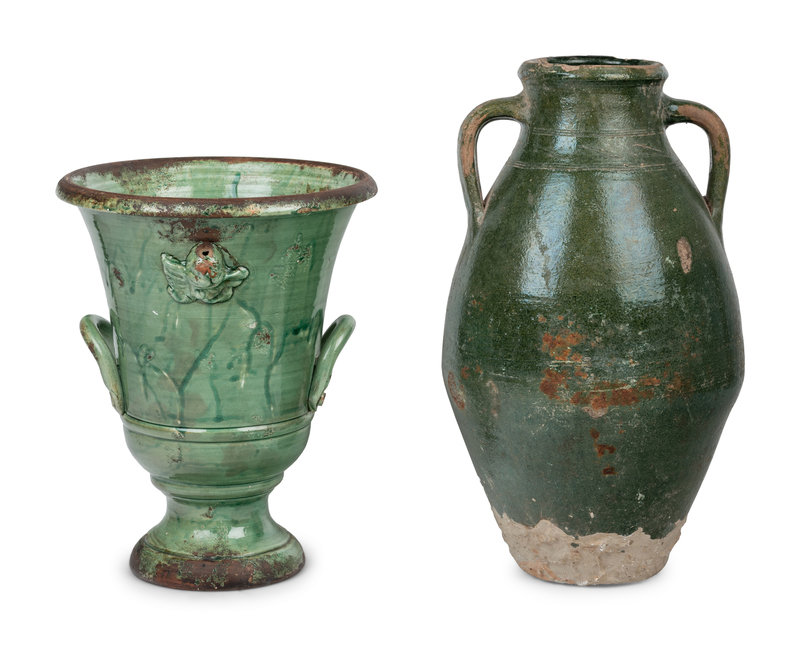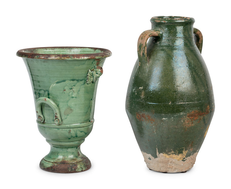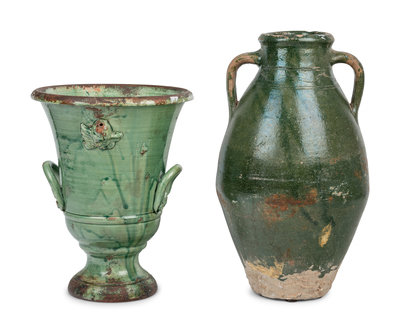 the taller example apparently unmarked, the shorter example with impressed Vietri/ Made in Italy mark.