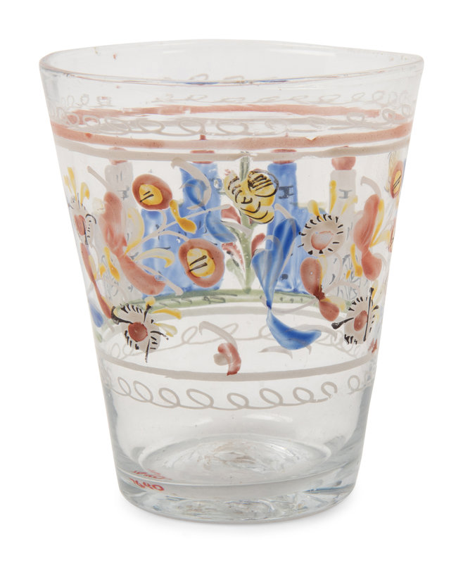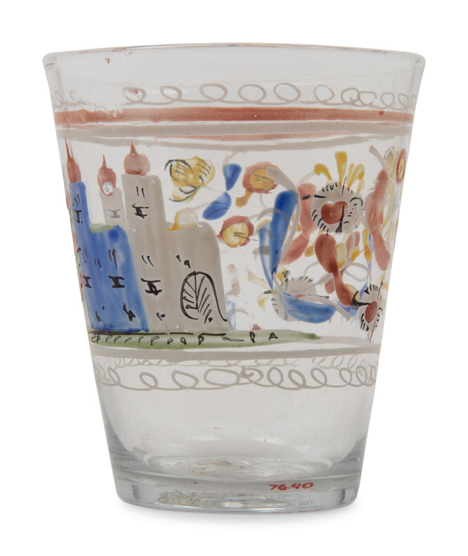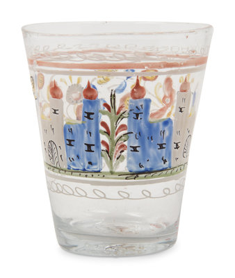 A Continental Stiegel-Type Enamel Decorated Flip Glass
