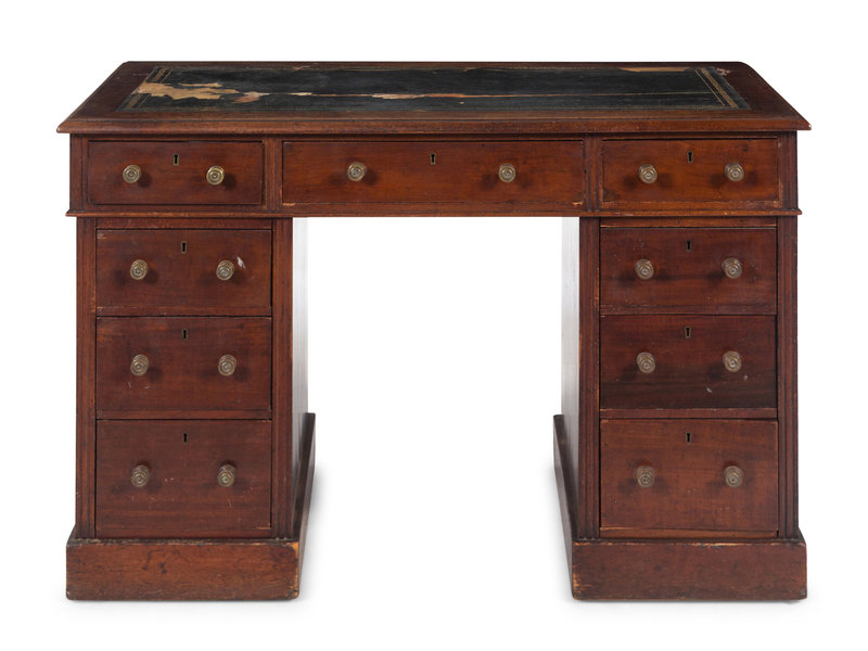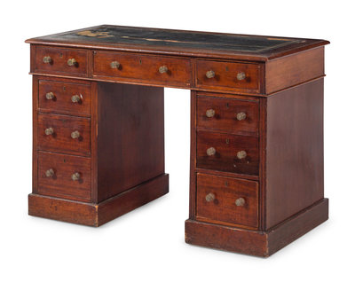 A George III Style Leather Inset Mahogany Pedestal Writing Desk