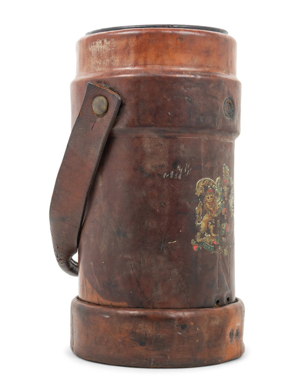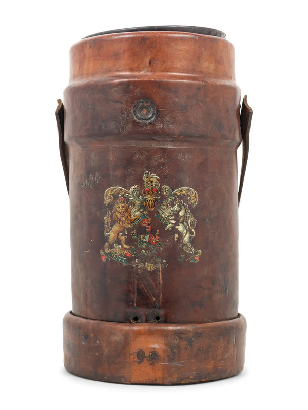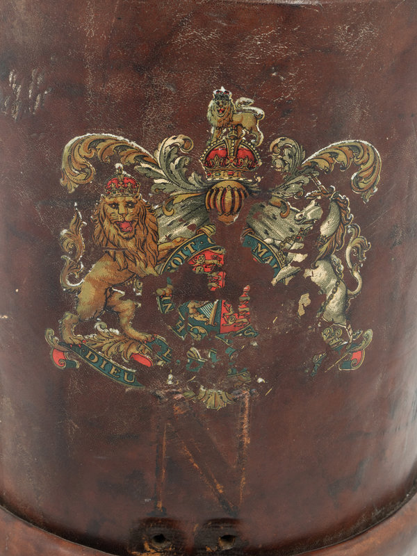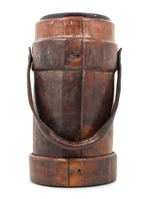 A WWI British Royal Navy Leather Artillery Bucket with an Associated American Indurated Fiber Liner