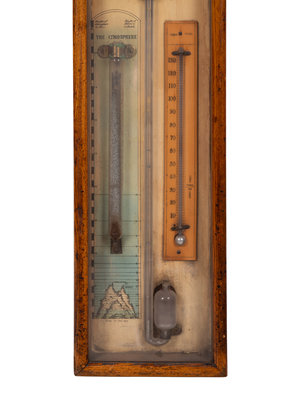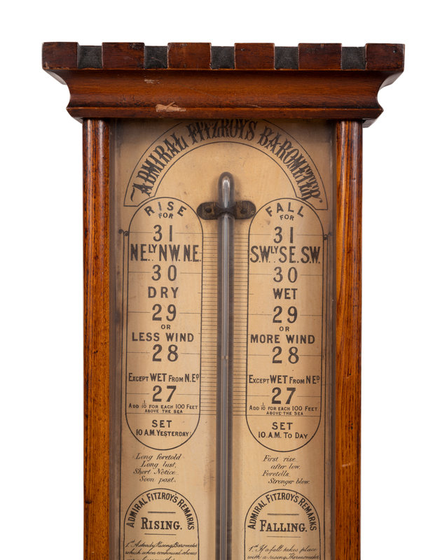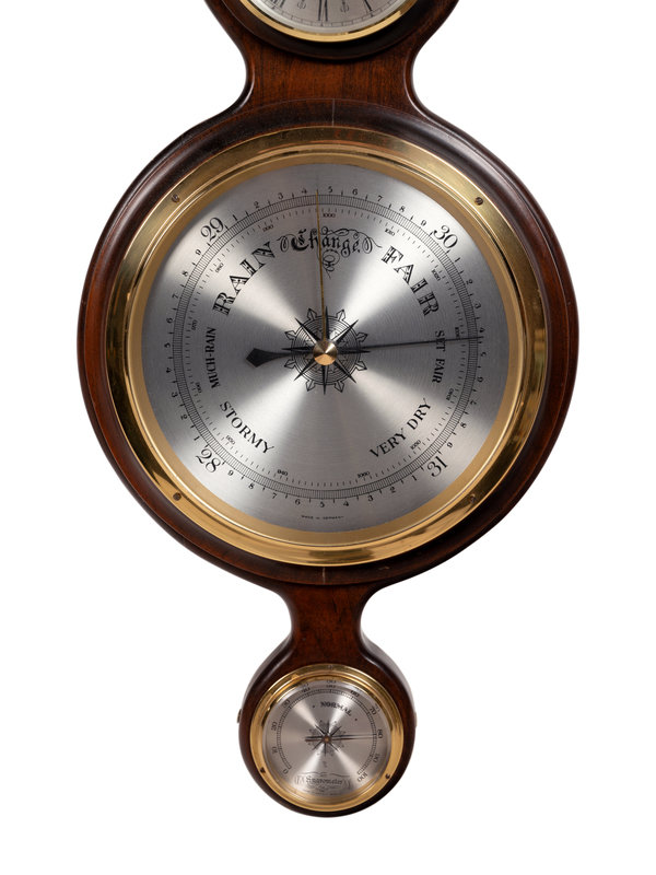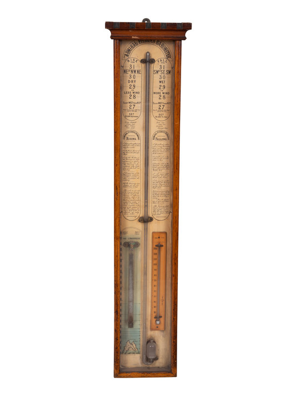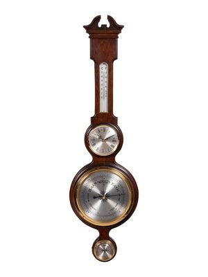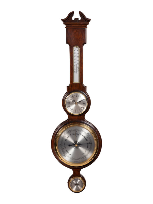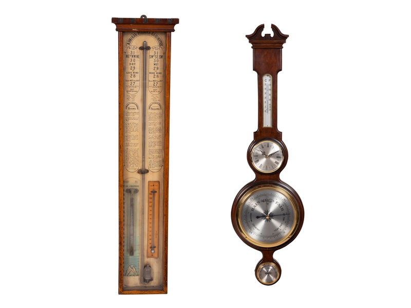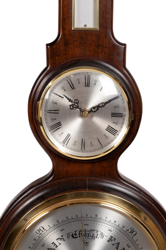 An Admiral Fitzroy Mahogany Barometer and a Modern English Mahogany Clock with Barometer
