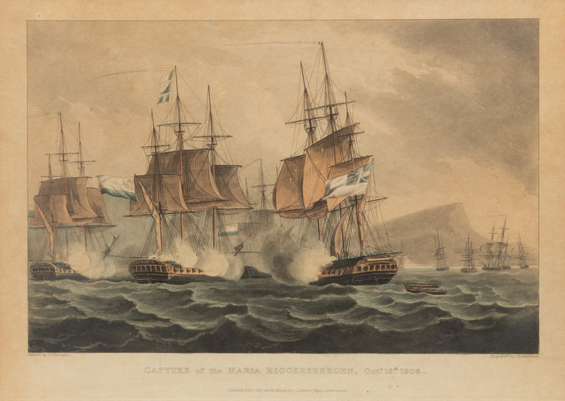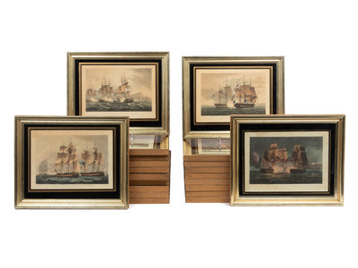 A Set of Twenty-One English Hand-Colored Maritime Engravings