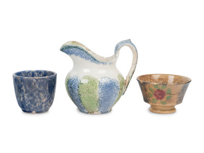 comprising a cream jug and two ironstone cups.