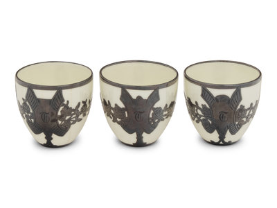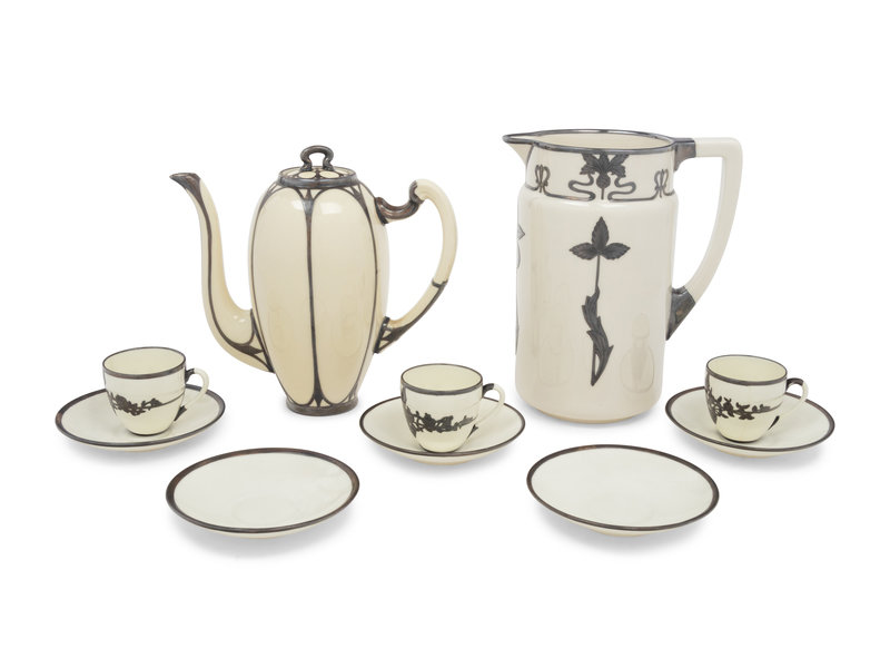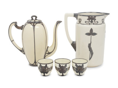 An English Metal Mounted Porcelain Coffee Service