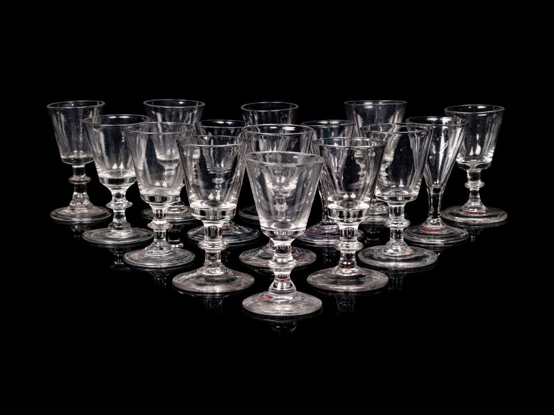 comprising a pair and a set of thirteen, each having a knopped stem.