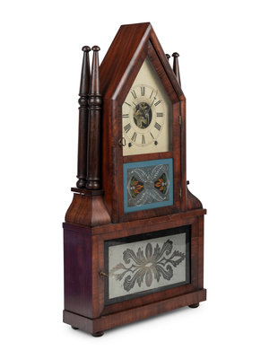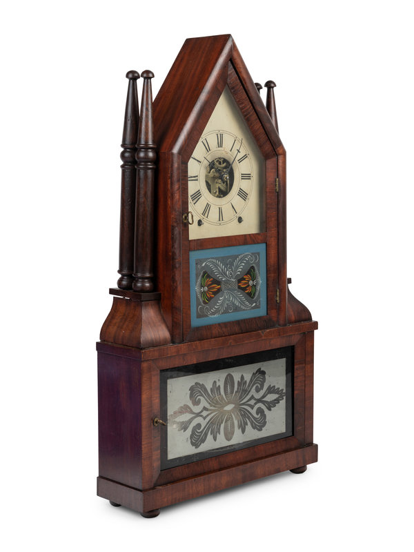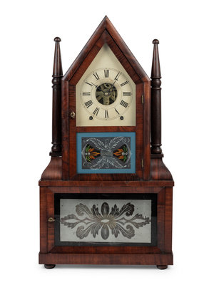 An American Mahogany and Reverse Painted Glass Mantel Clock