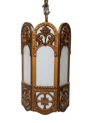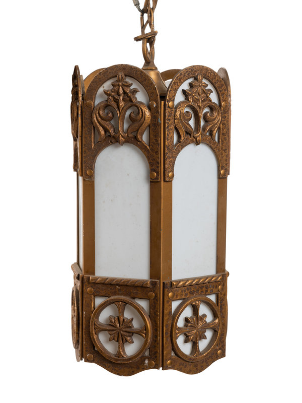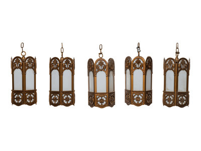 A Set of Five Gothic Revival Gilt Aluminum Lanterns
