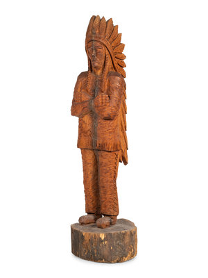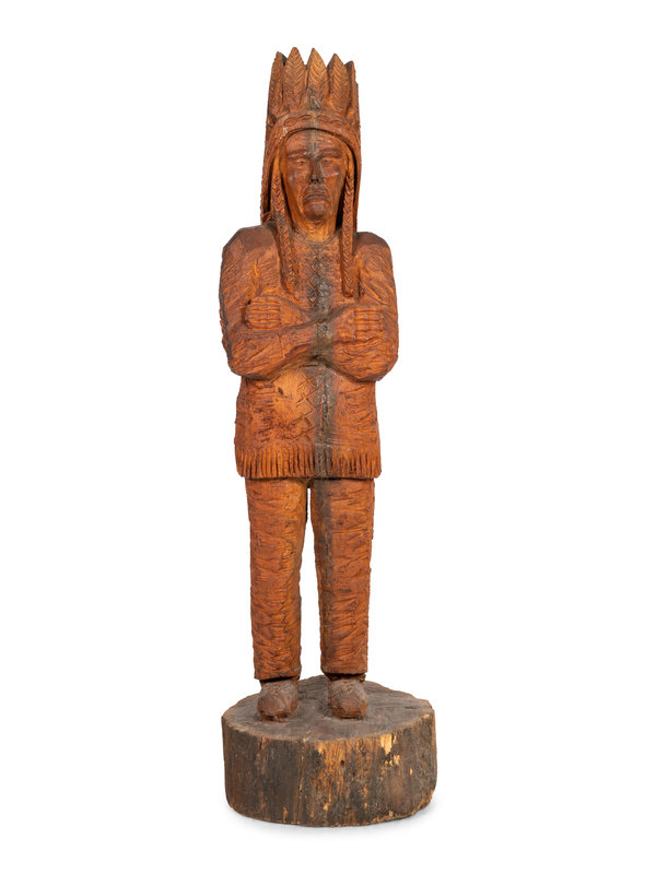 A Carved Wood Figure of an Indian by Don Colp (American, b. 1932)