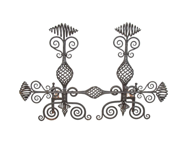 A Pair of Wrought Iron Andirons