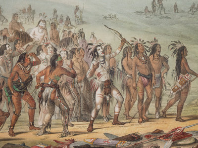 Archery of the Mandans (Plate 24), Ball-Play Dance (Plate 22) and Ball Players (Plate 21) (three works)