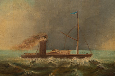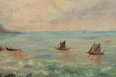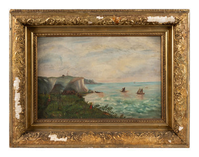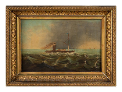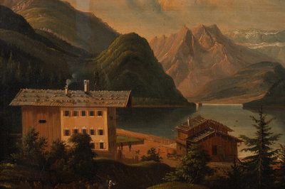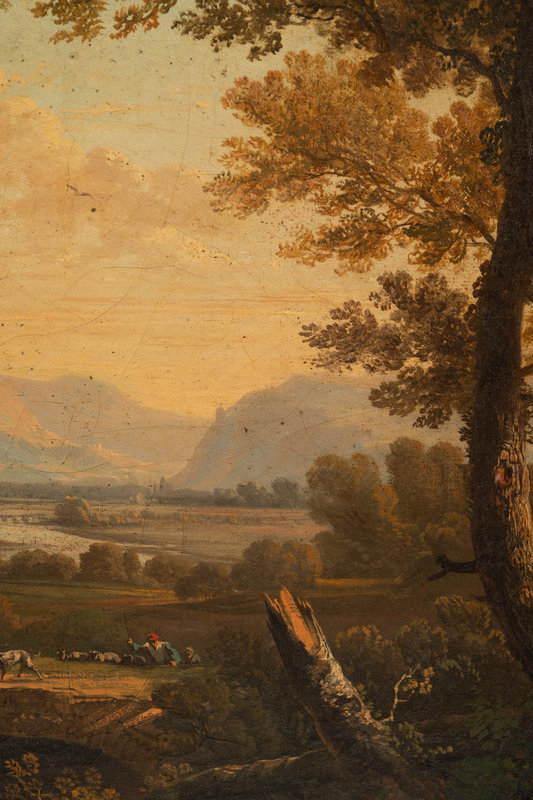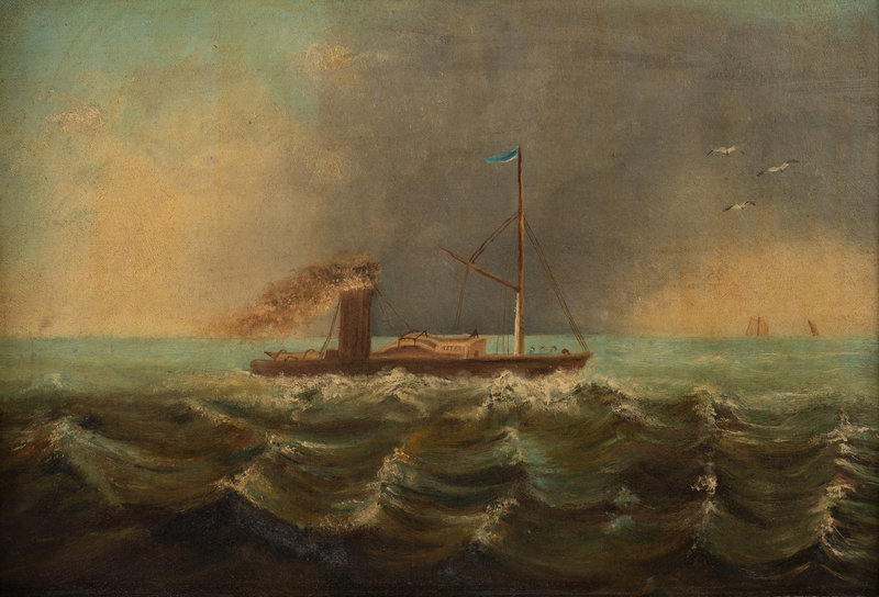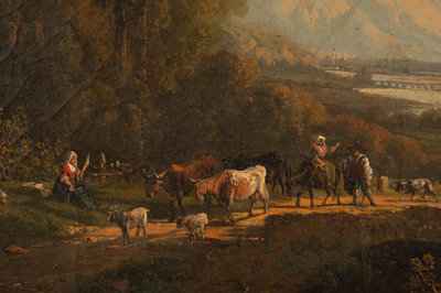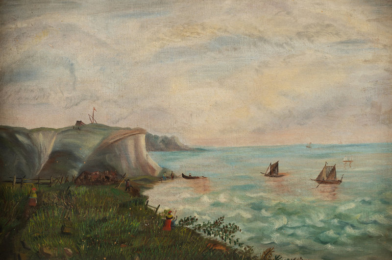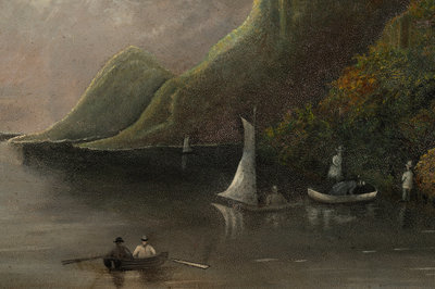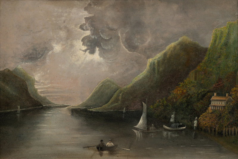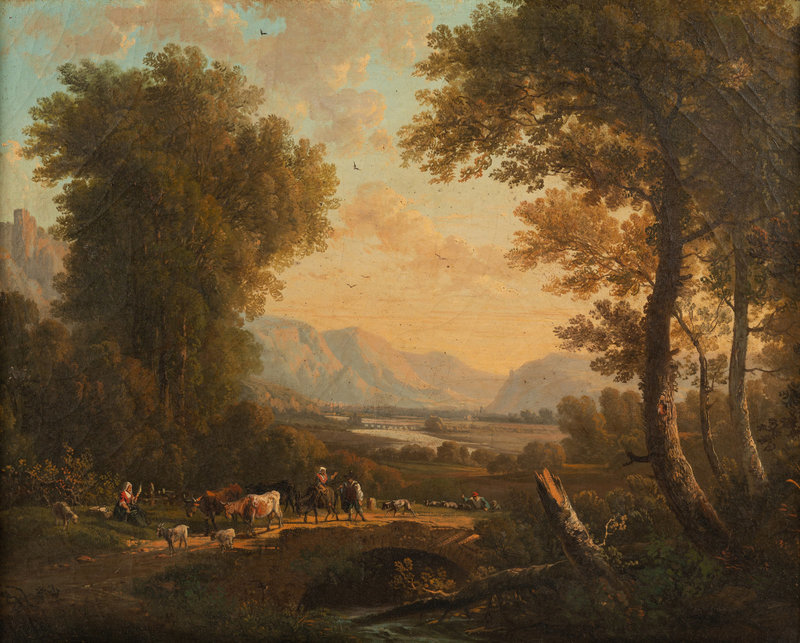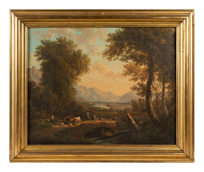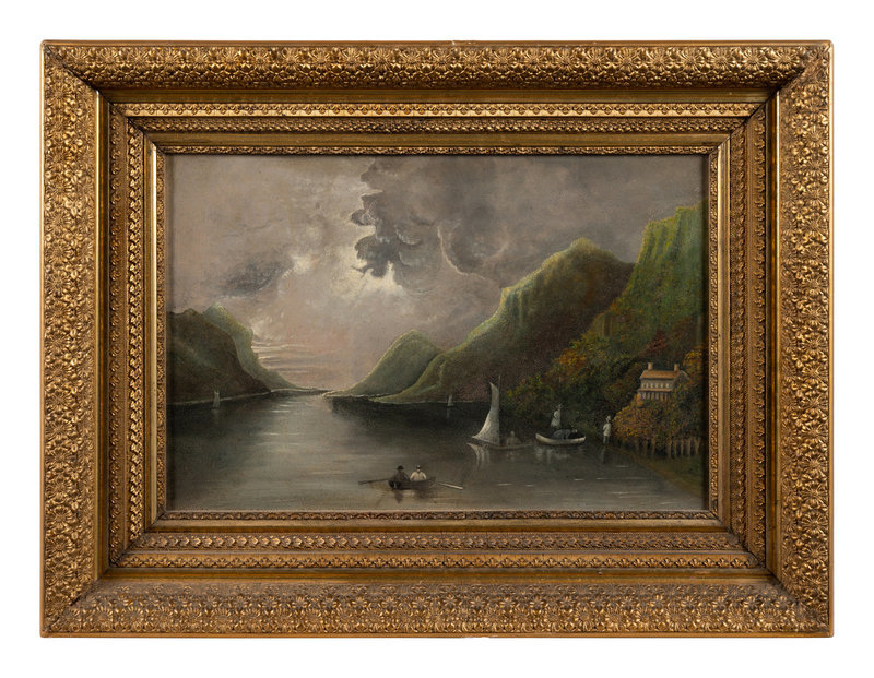 including Figures and Cattle on a Bridge, oil on canvas; Figures in Boats Under Stormy Skies, oil on board; Steamboat on Waves, oil on canvas; Village in River Valley, oil on canvas and Figures on a Cliff Overlooking Boats, oil on canvas.