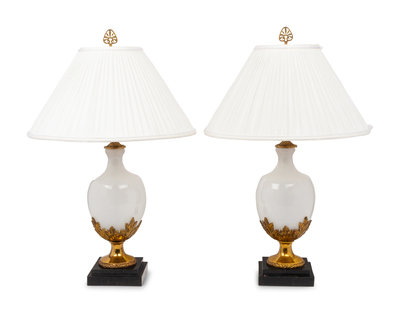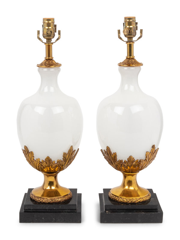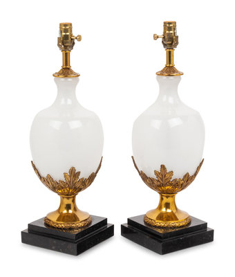 A Pair of Gilt Metal Mounted Opaline Glass Vases Mounted as Lamps