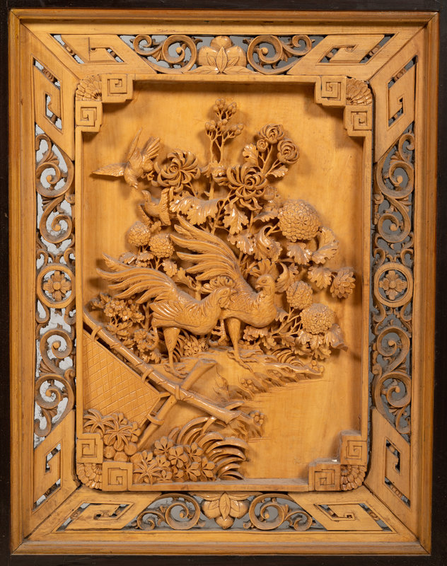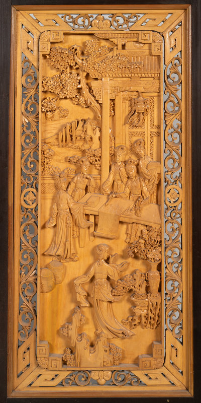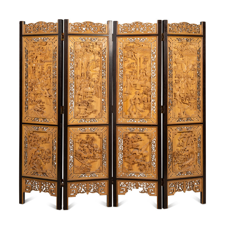 A Chinese Carved Wood Four-Panel Floor Screen