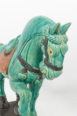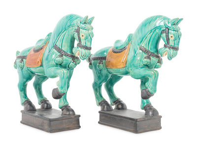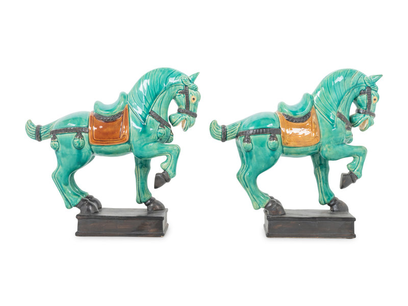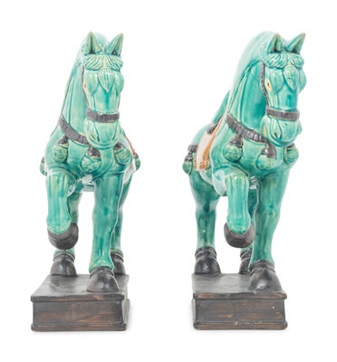 A Pair of Turquoise Glazed Pottery Horses