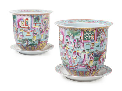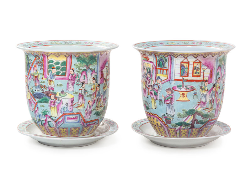 A Pair of Chinese Export Famille Rose Porcelain Jardinières