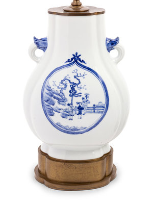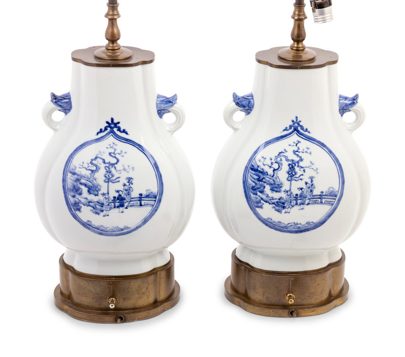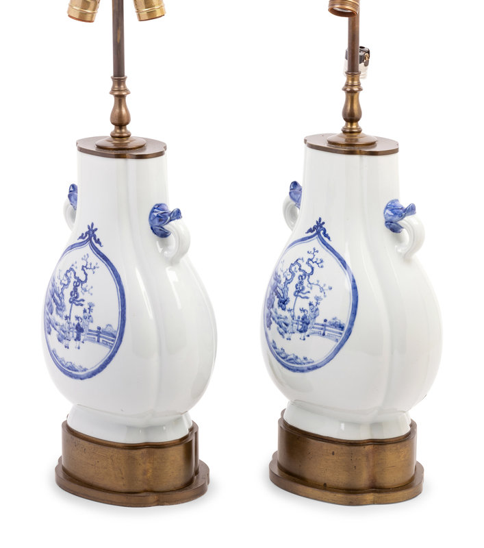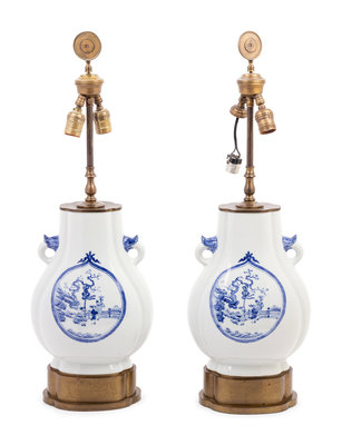 A Pair of Chinese Blue and White Porcelain Vases Mounted as Lamps