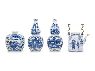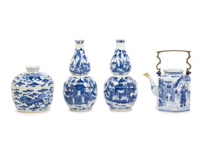 A Group of Chinese Export Blue and White Porcelain Articles