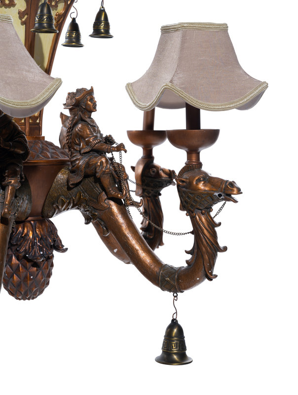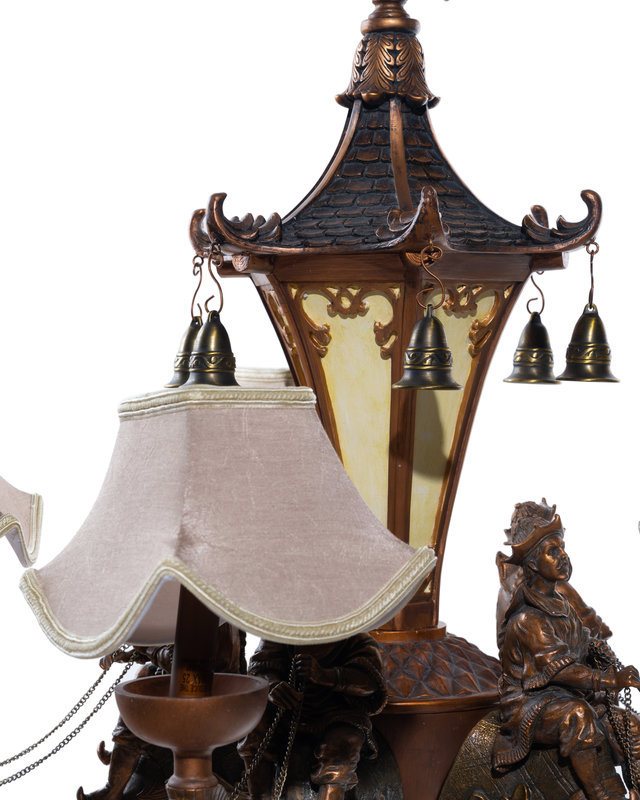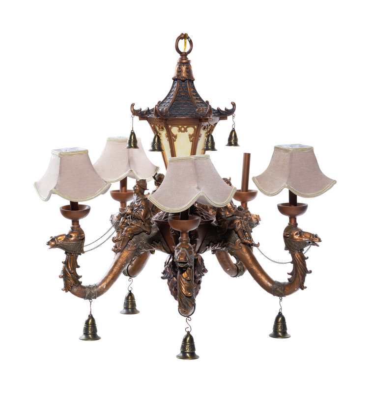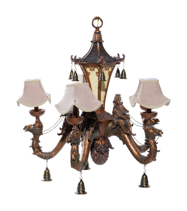 A Chinoiserie Style Polychromed Composition Five-Light Chandelier