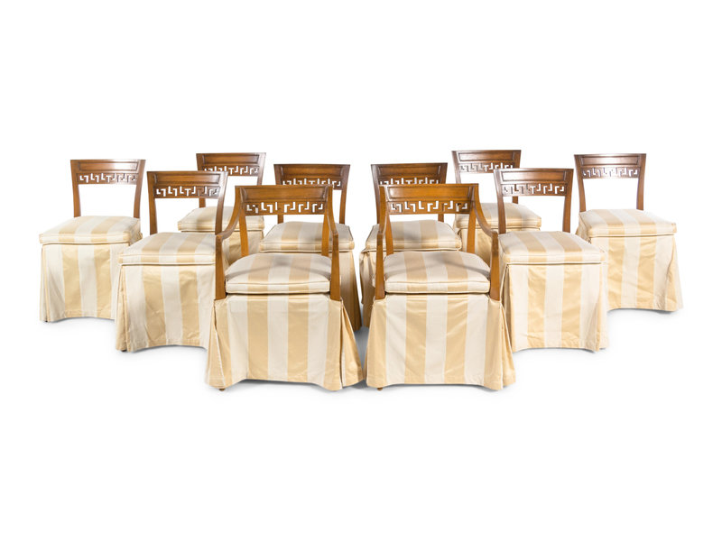 A Set of Ten Neoclassical Style Dining Chairs