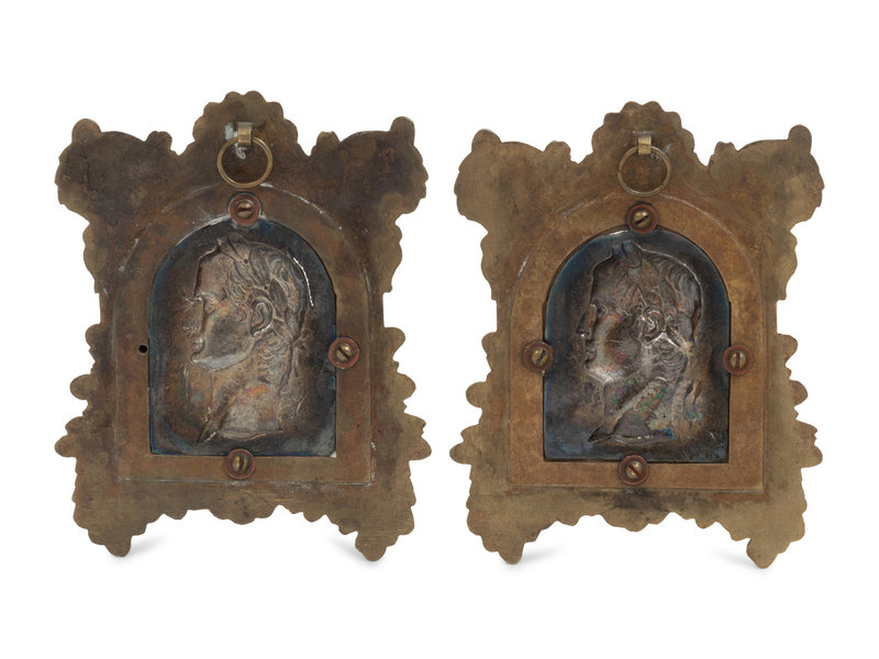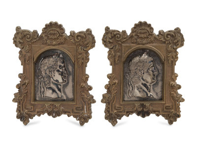 A Pair of Neoclassical Gilt and Silvered Bronze Plaques