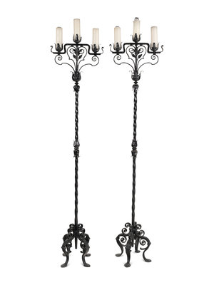 A Pair of Wrought Iron Torchères
